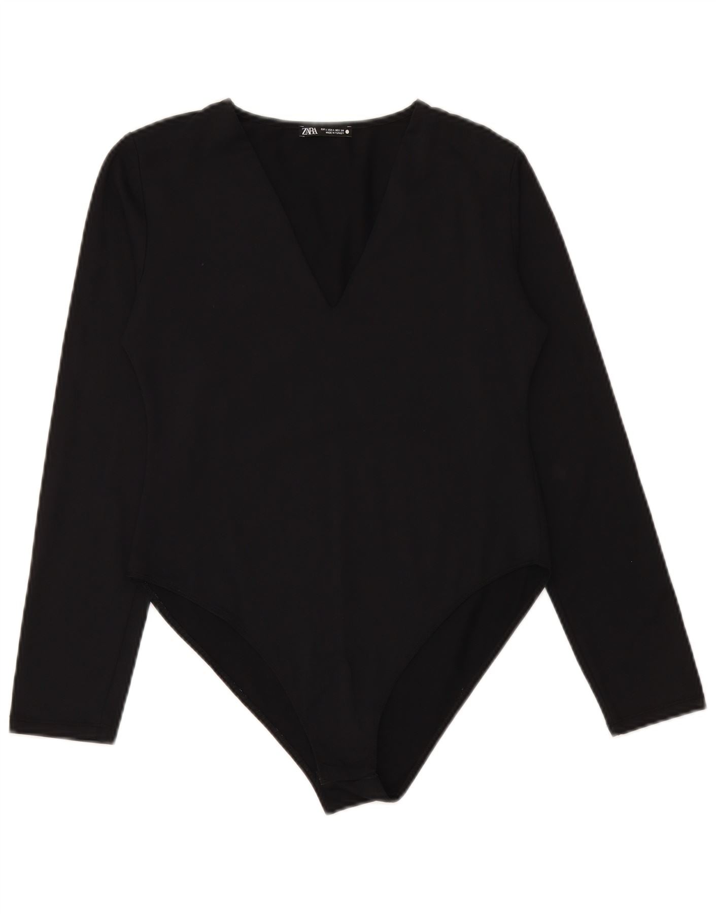 ZARA Womens Long Sleeve Bodysuit UK 14 Large Black Polyamide