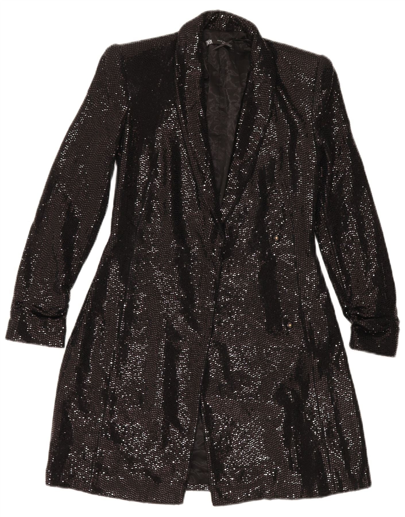 Женский удлиненный открытый пиджак ZARA UK 6 XS, черный полиамид