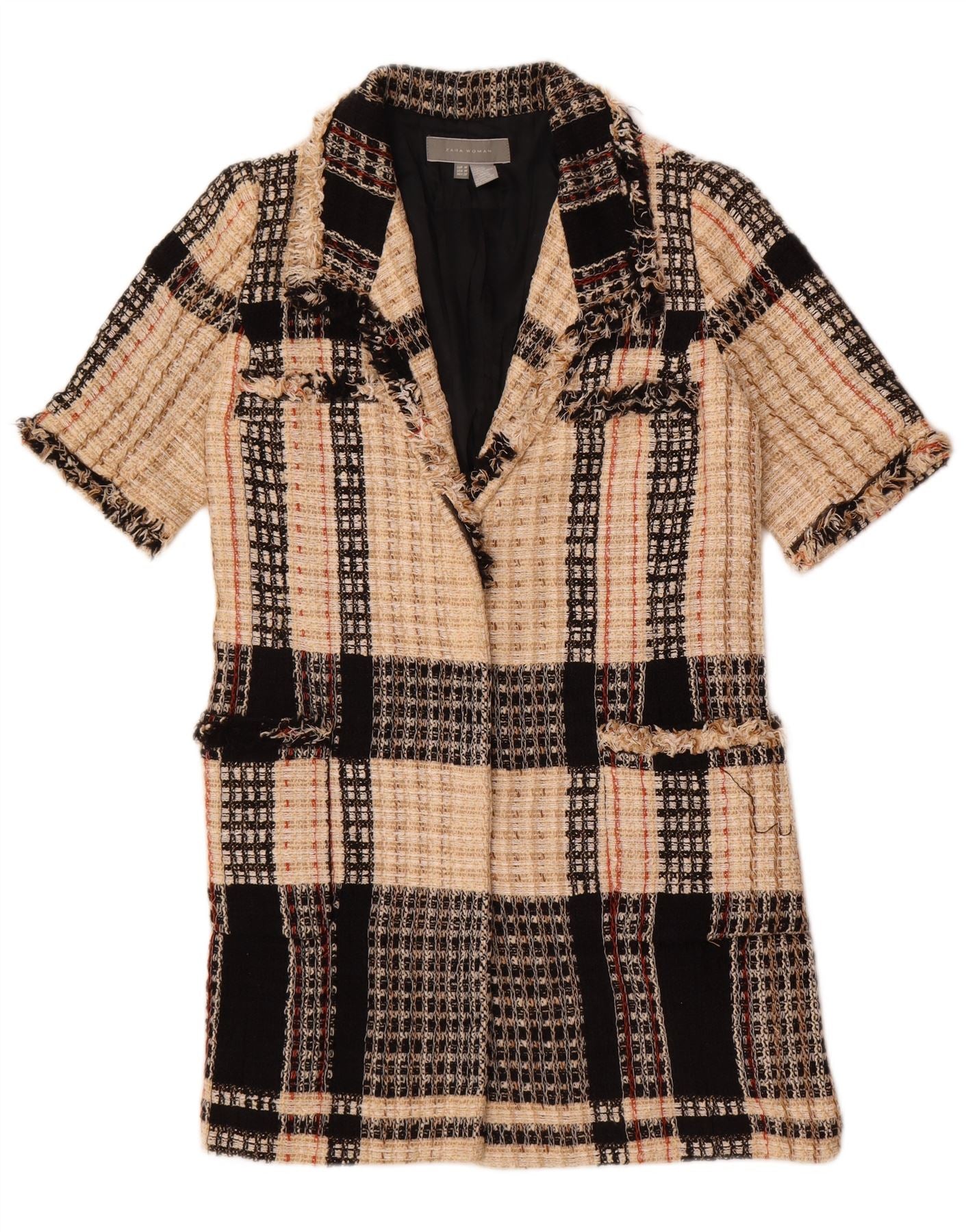 Женский удлиненный пиджак Zara с коротким рукавом UK 12, средний бежевый в клетку