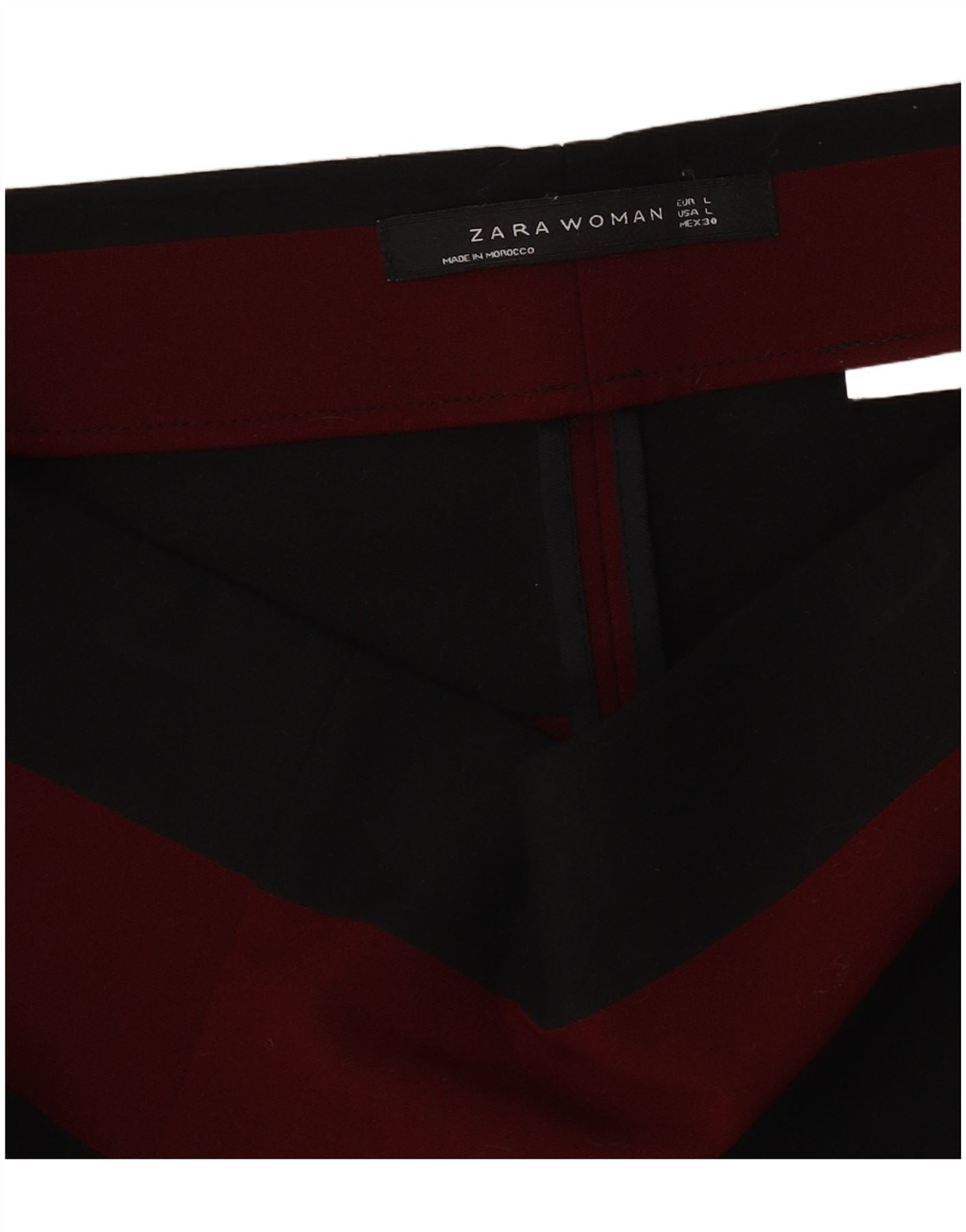 - Описание ИИ: Эта женская мини-юбка Zara изготовлена из тканого материала с яркими черными и бордовыми полосками. Мини-длина придает современный силуэт. Регулярная посадка обеспечивает комфортное ношение. Незаметная застежка-молния обеспечивает гладкую поверхность. Полосатый узор добавляет современный графический оттенок, что делает его универсальным предметом гардероба для различных случаев.