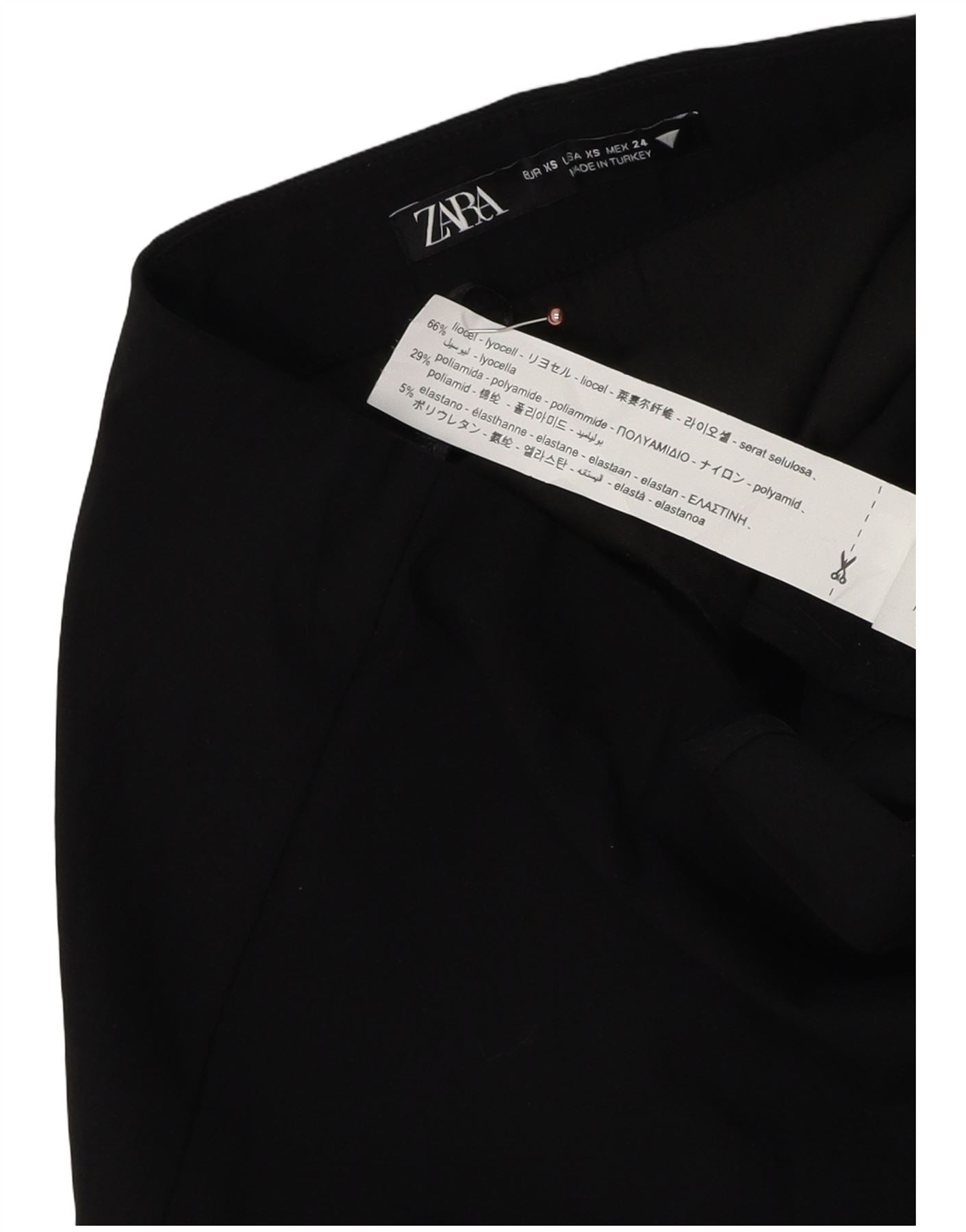 - Описание ИИ: Эта женская мини-юбка Zara изготовлена из черной смесовой лиоцелльной ткани, обеспечивающей гладкость и эластичность. Модель имеет классический крой и современный силуэт. Застежка-молния обеспечивает гладкий вид спереди. Характерный край с оборками придает дизайну игривый, но утонченный вид.