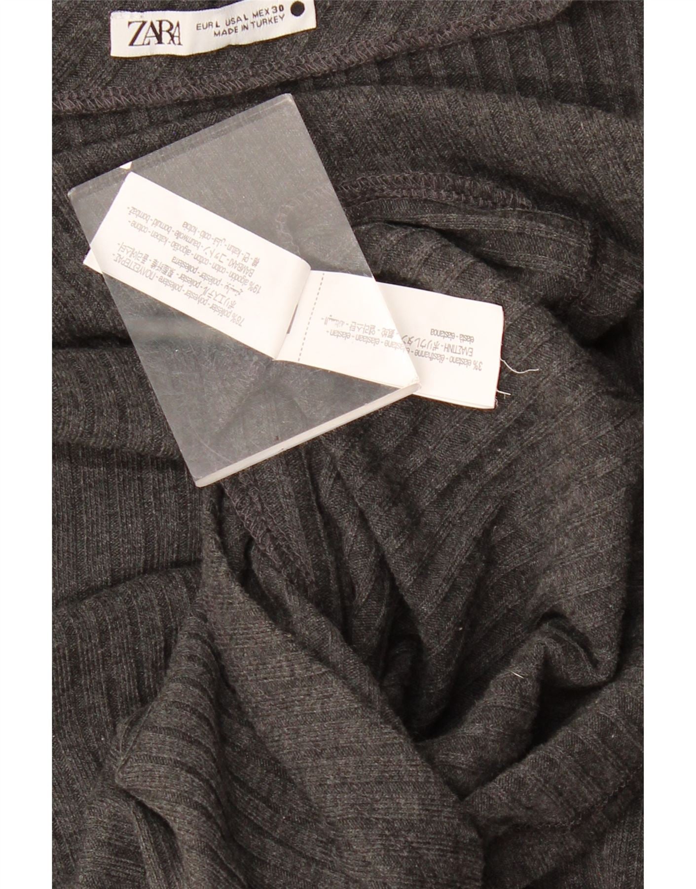 - Описание ИИ: Женский топ-футболка Zara изготовлен из серой трикотажной смеси полиэстера и эластана. Имеет удобную эластичную текстуру. Высокий воротник и длинные рукава создают изящный силуэт. Регулярная посадка обеспечивает удобство ношения. Тонкая складка по бокам придает модели современный структурированный вид. Этот дизайн пуловера сочетает в себе комфорт и современный стиль.