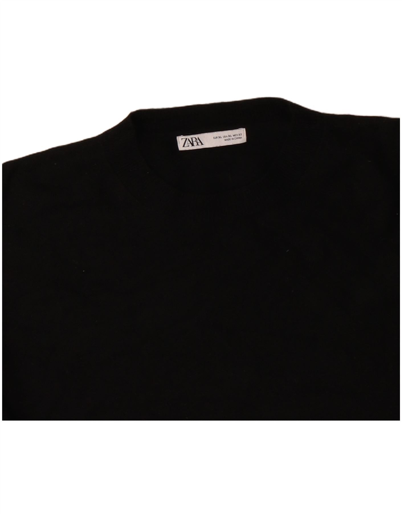 Женский свободный джемпер с круглым вырезом ZARA, Великобритания, 18 XL, черный, шерсть