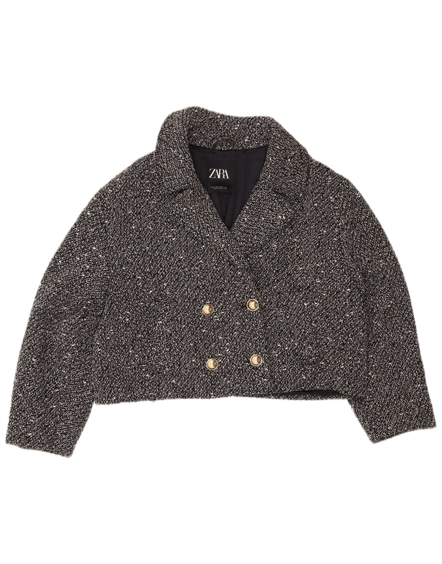 Женский укороченный пиджак оверсайз ZARA UK 18 XL, черный в крапинку
