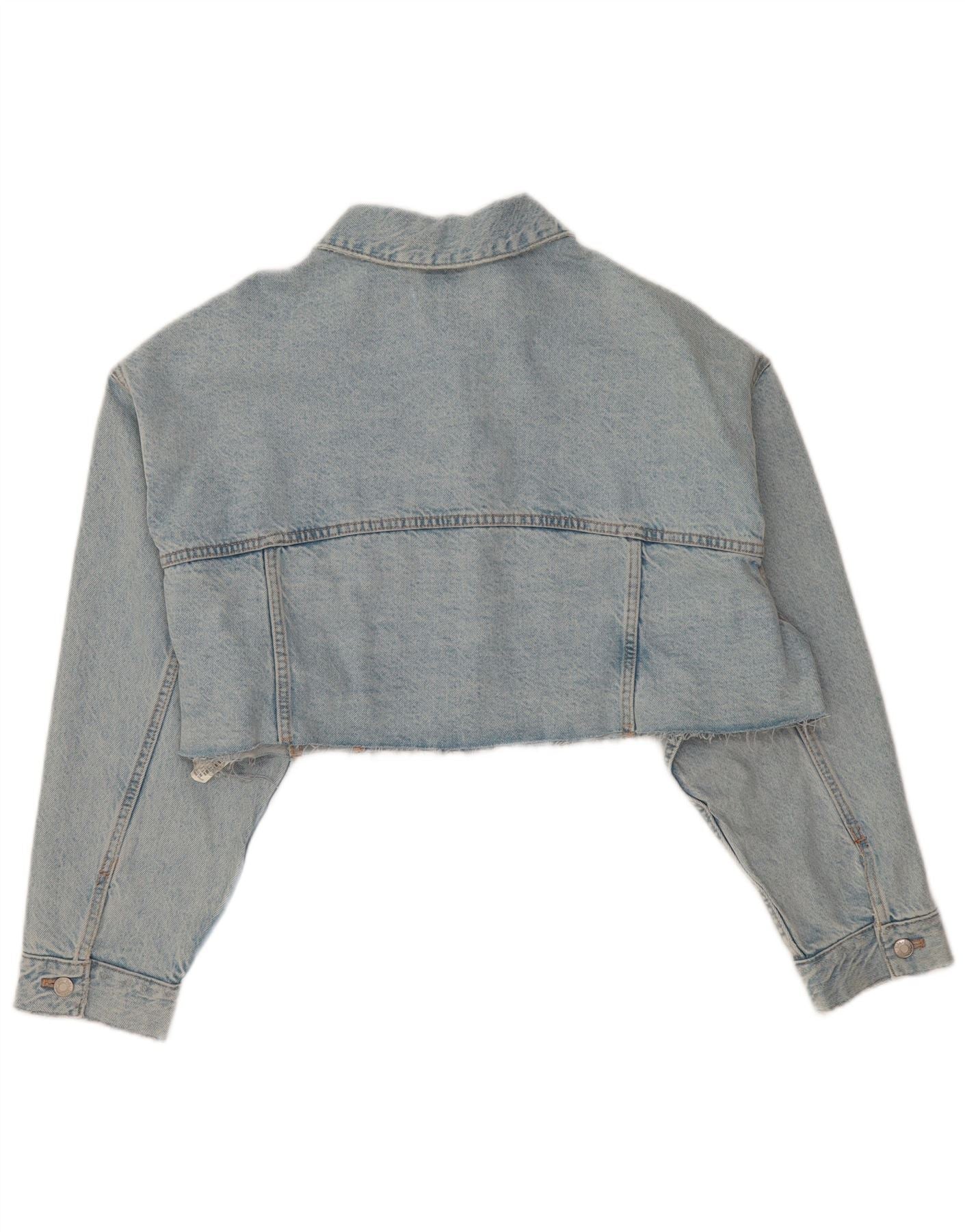 Женская укороченная джинсовая куртка оверсайз ZARA UK 14, хлопок среднего синего цвета