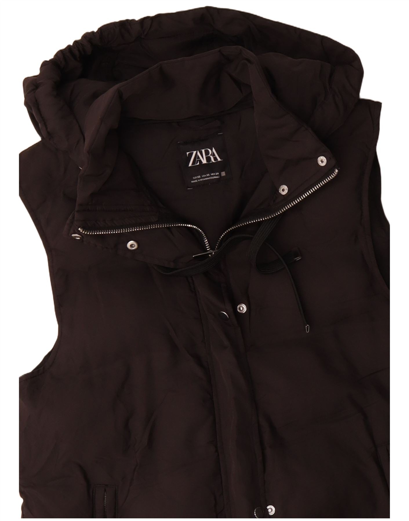 ZARA Женский удлиненный утепленный жилет большого размера с капюшоном UK 6 XS, коричневый полиэстер