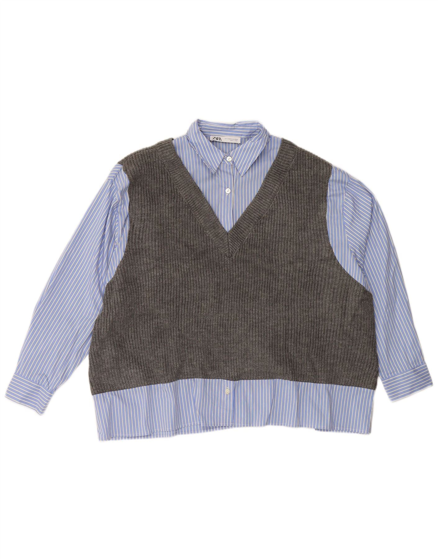Женская трикотажная рубашка без рукавов ZARA UK 6 XS в синюю полоску