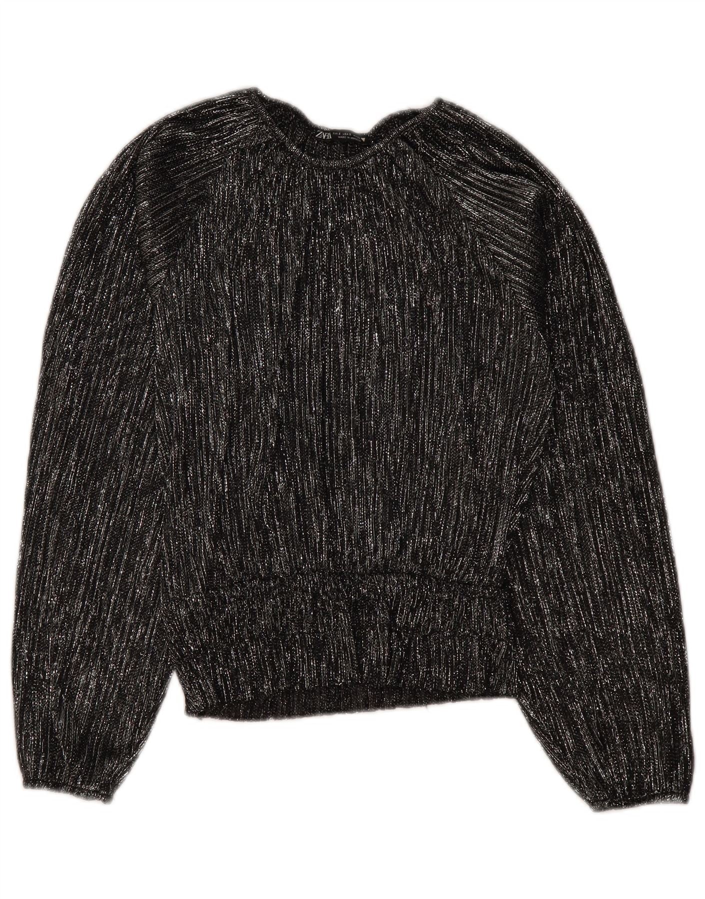 - Описание ИИ: Женский джемпер с круглым вырезом Zara выполнен из легкого трикотажного полотна черного цвета. Он имеет яркий блестящий акцент, создающий тонкий полосатый узор. Материал обеспечивает комфортную эластичность и имеет подкладку для тепла. Модель имеет свободный укороченный крой и классический круглый вырез. Длинные рукава дополняют современный силуэт пуловера, делая его универсальным и стильным выбором.