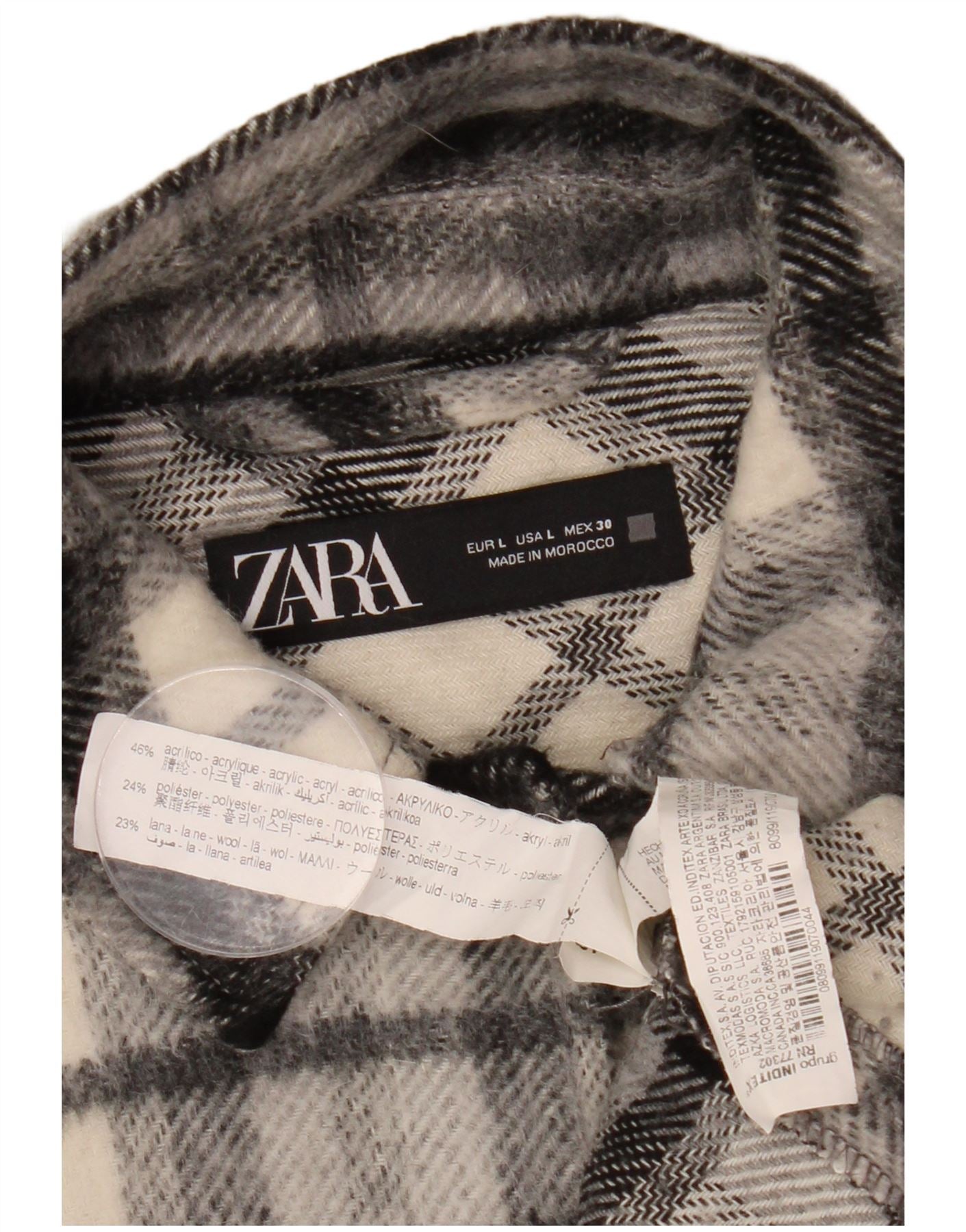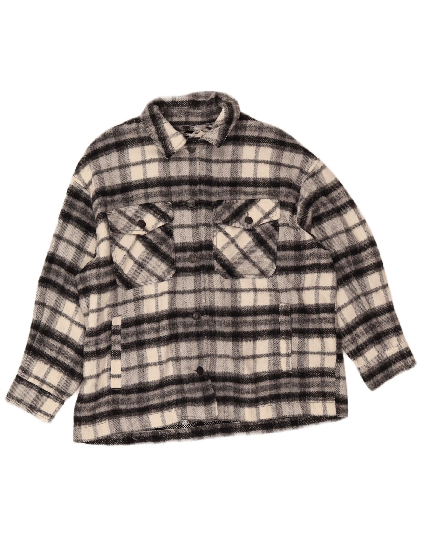 Женская фланелевая рубашка оверсайз ZARA UK 16, большая черная клетка