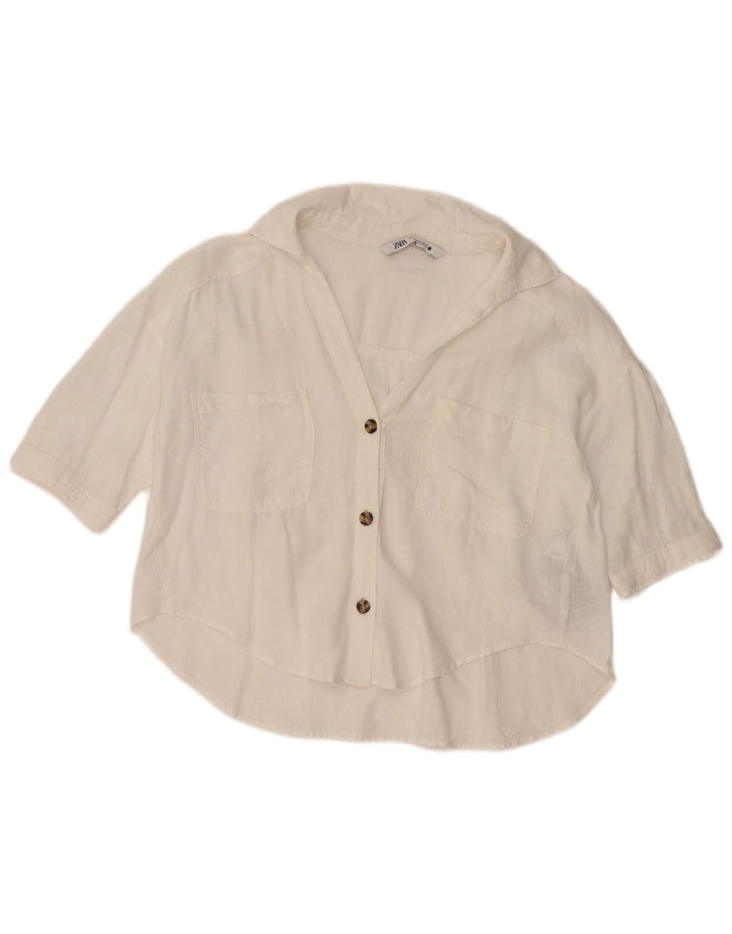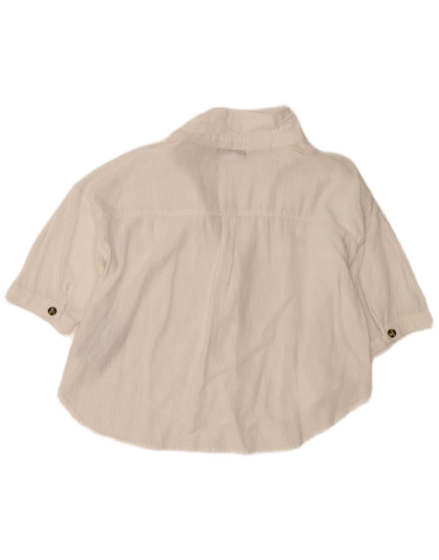 ZARA Womens Oversized Short Sleeve Shirt Blouse UK 6 XS White Linen