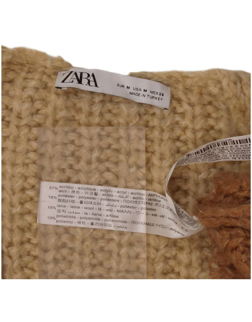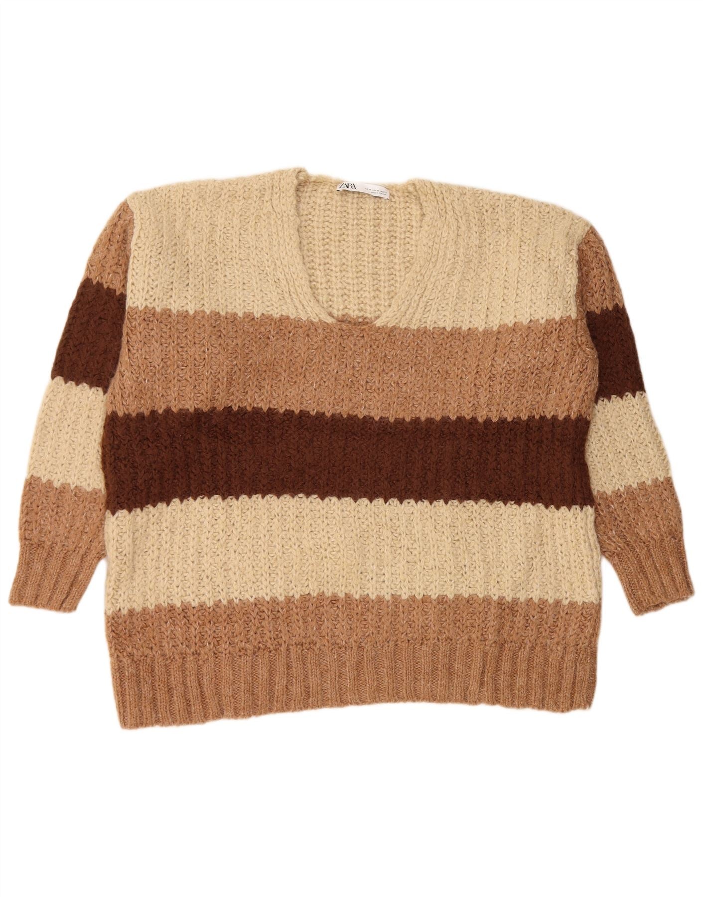 Женский свободный джемпер с v-образным вырезом ZARA UK 14, средний бежевый в полоску