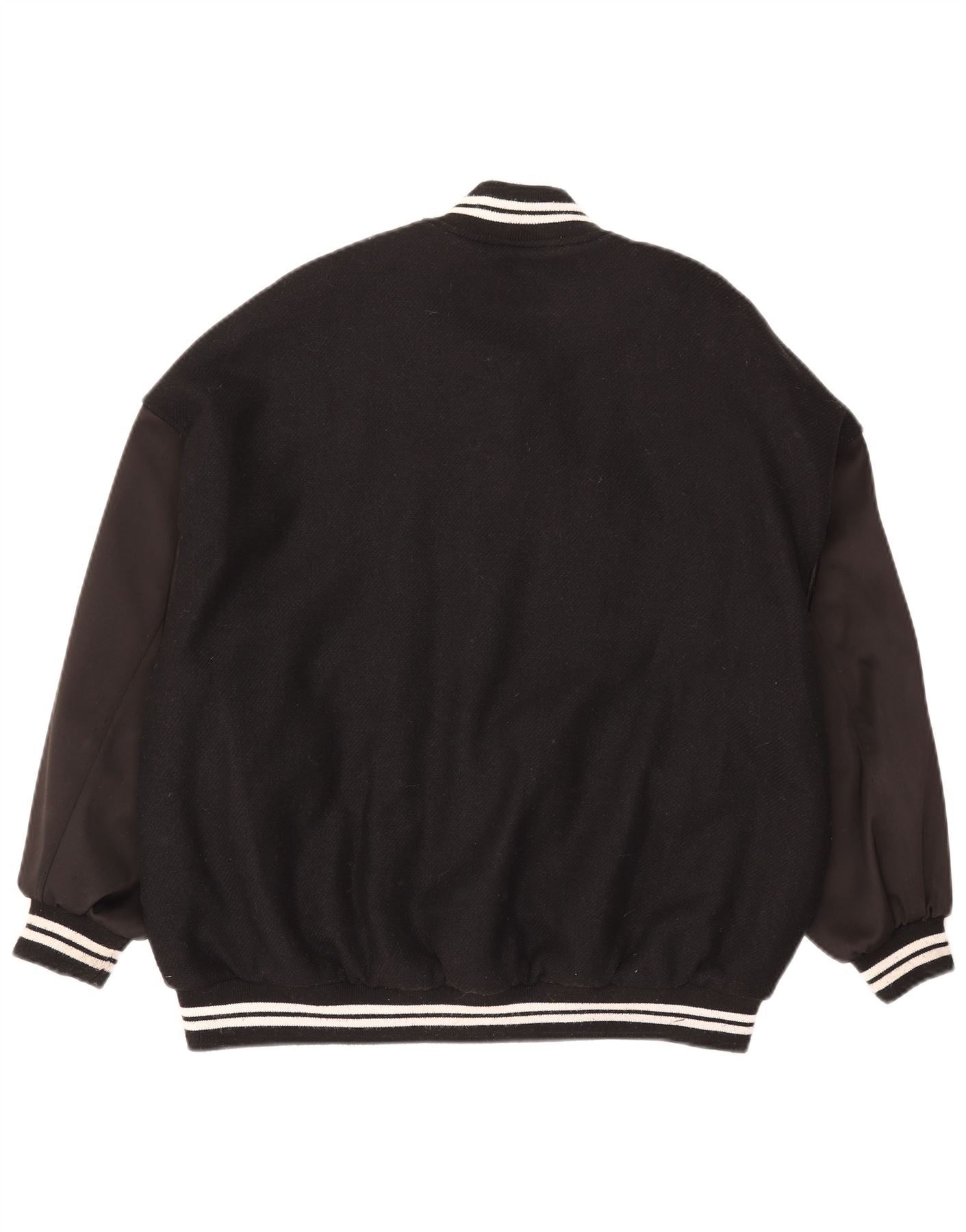 Женская университетская куртка оверсайз ZARA UK 6 XS, черная, шерстяная с цветными блоками