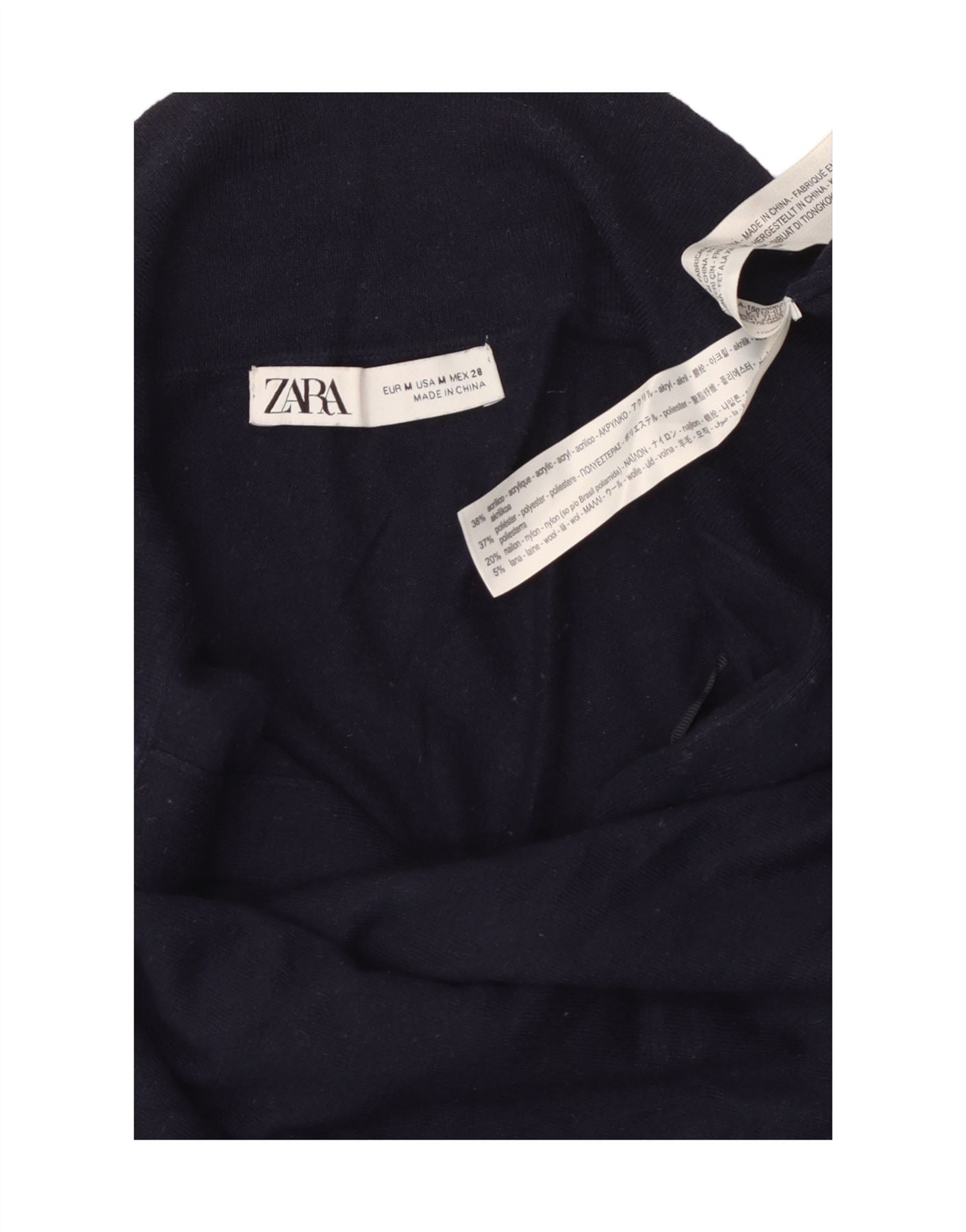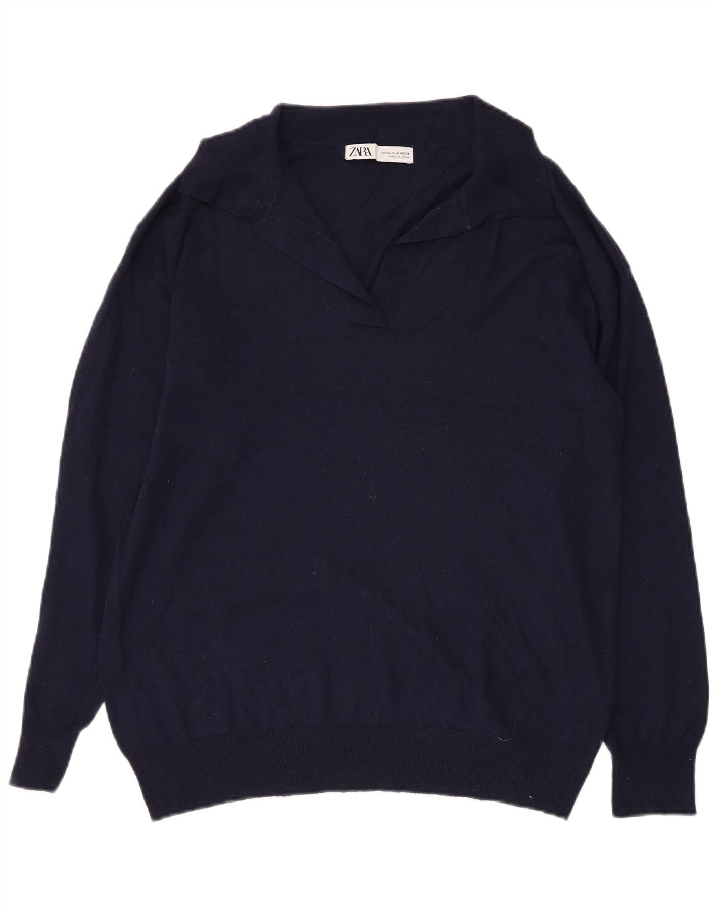 Женский свитер с воротником поло ZARA UK 14, средний темно-синий, акрил