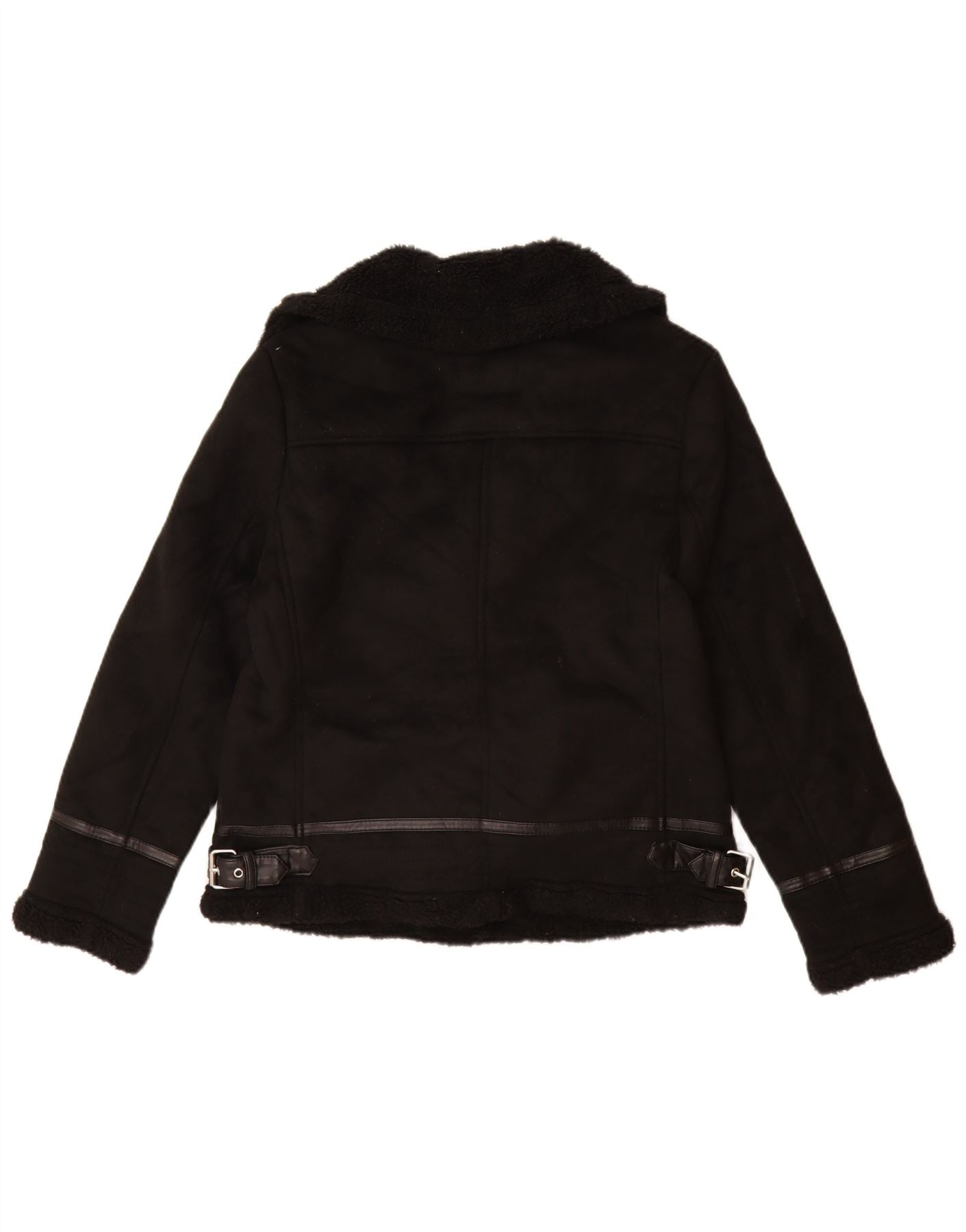 Женская байкерская куртка ZARA из шерпа UK 12, средний черный полиэстер