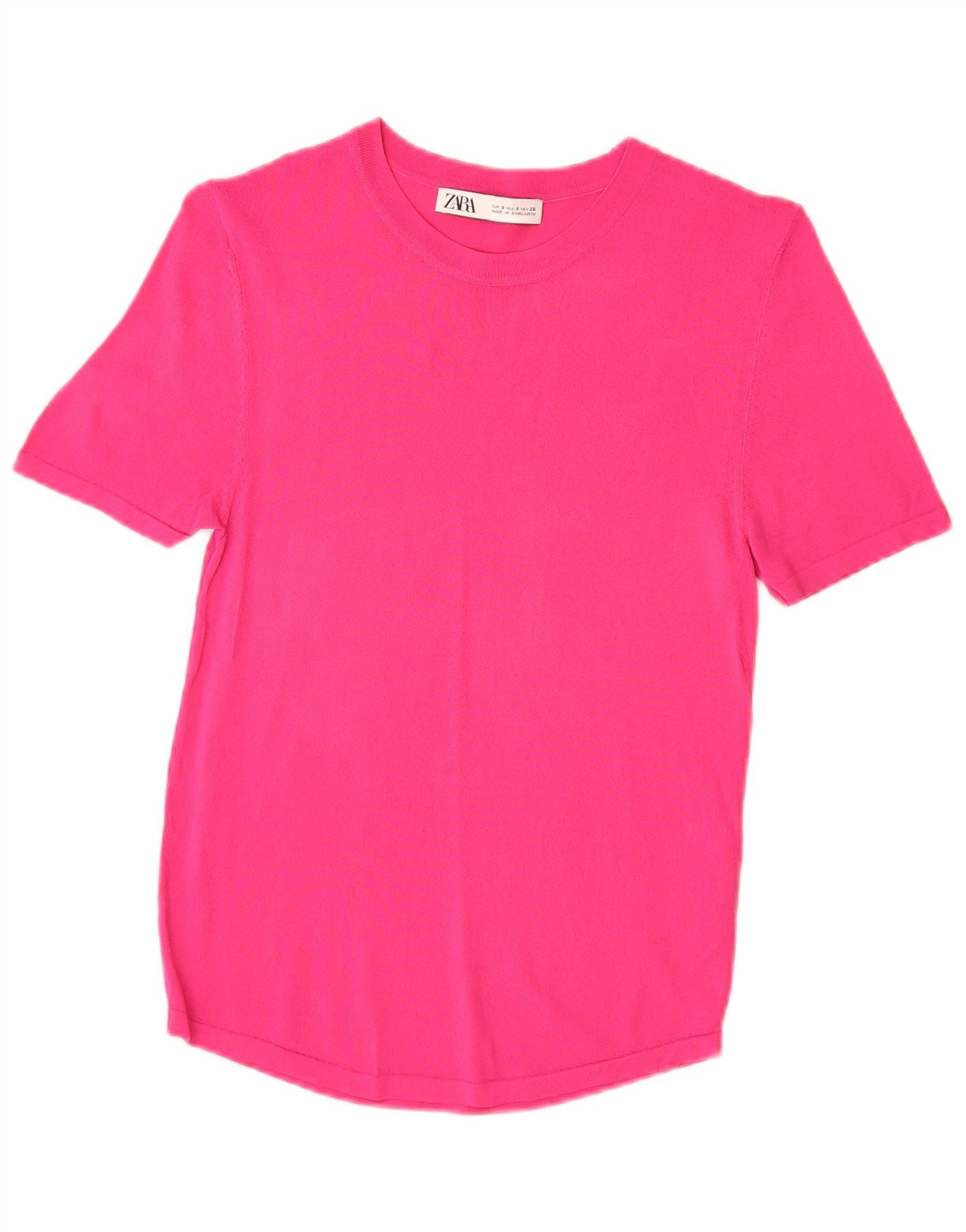 Женский джемпер с вырезом «лодочкой» ZARA, Великобритания, 8, маленький розовый, вискоза