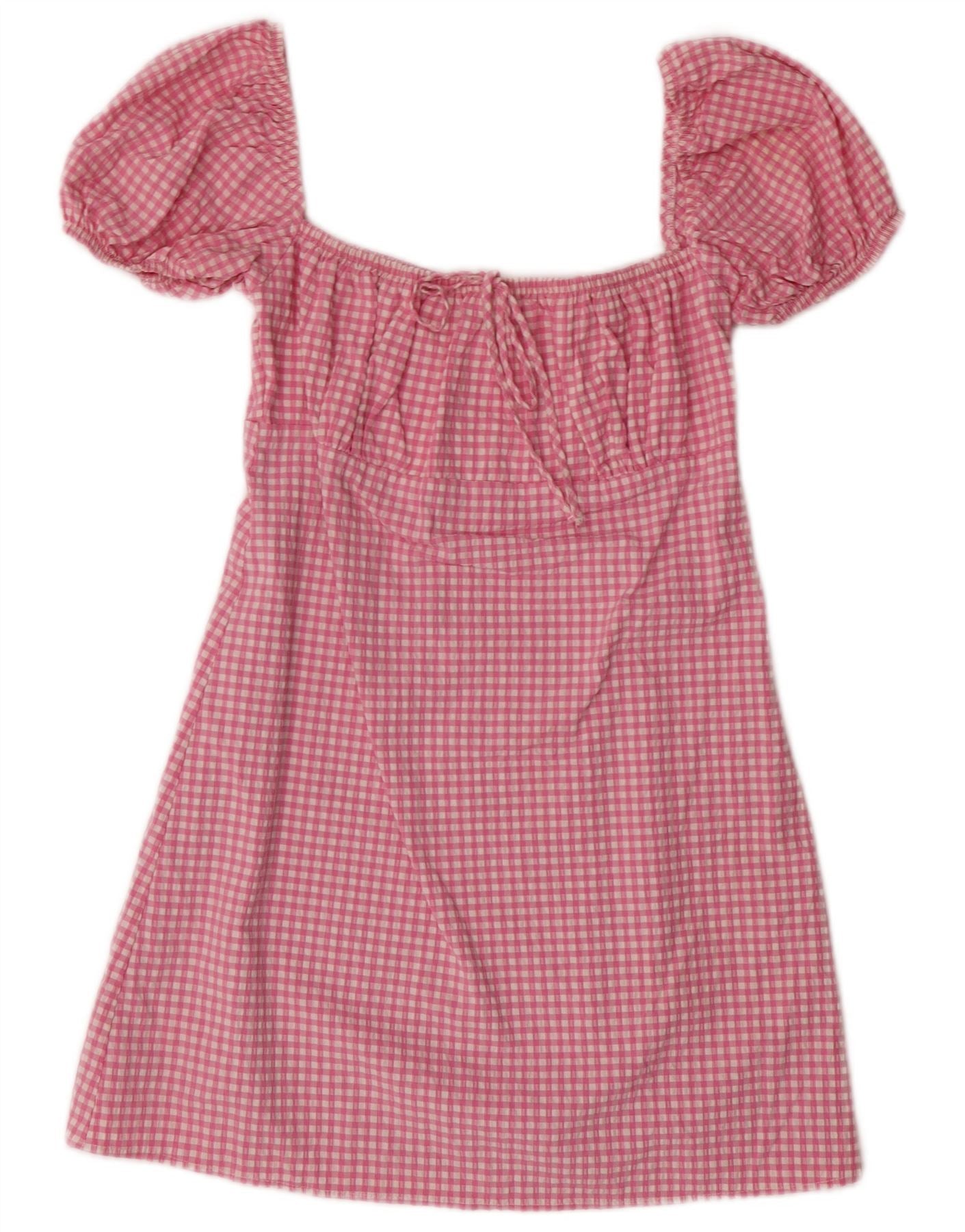 Zara Женский сарафан с короткими рукавами UK 12 Средне-розовый в клетку в богемном стиле