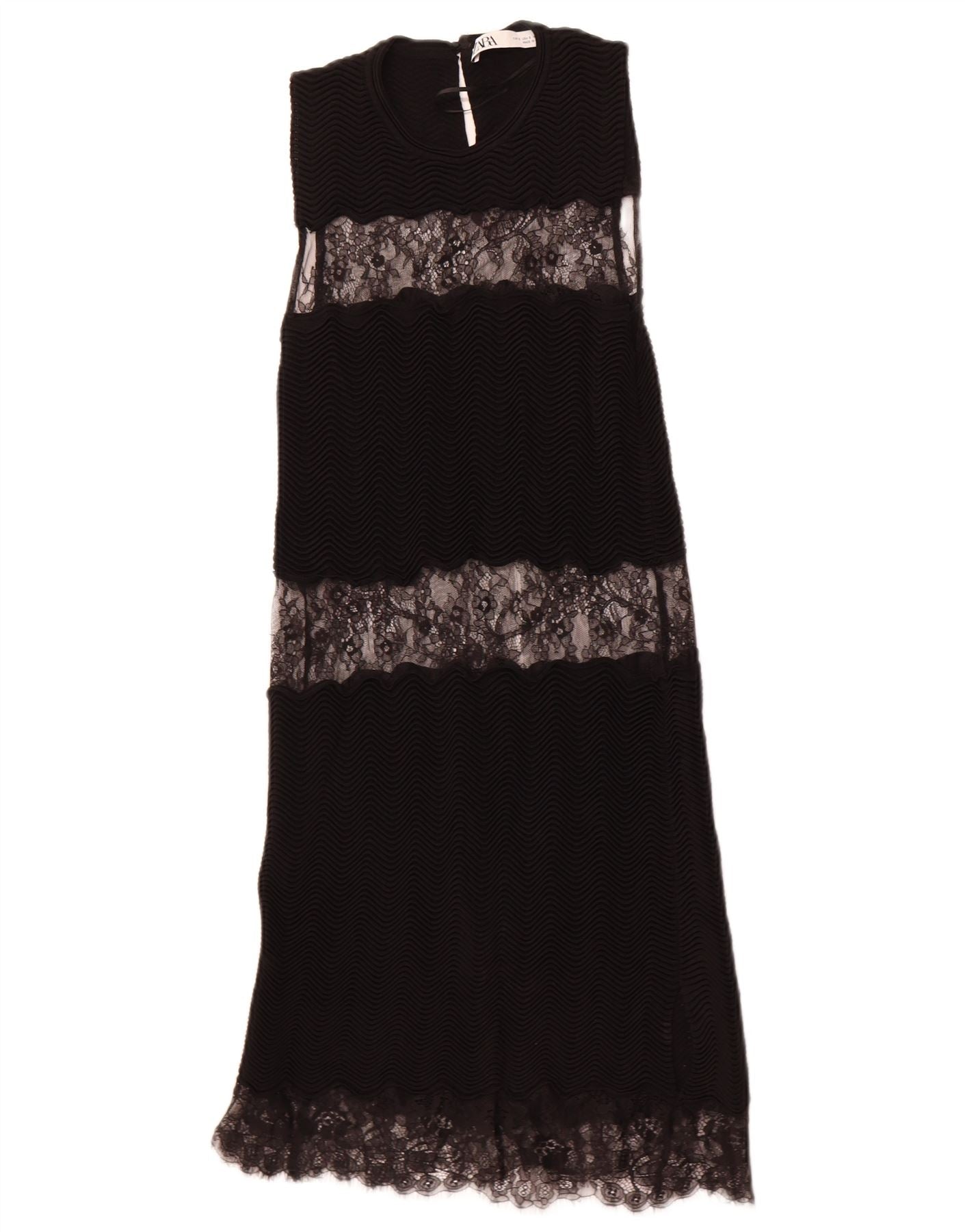 Женское кружевное платье макси без рукавов ZARA UK 8, маленькое черное из вискозы