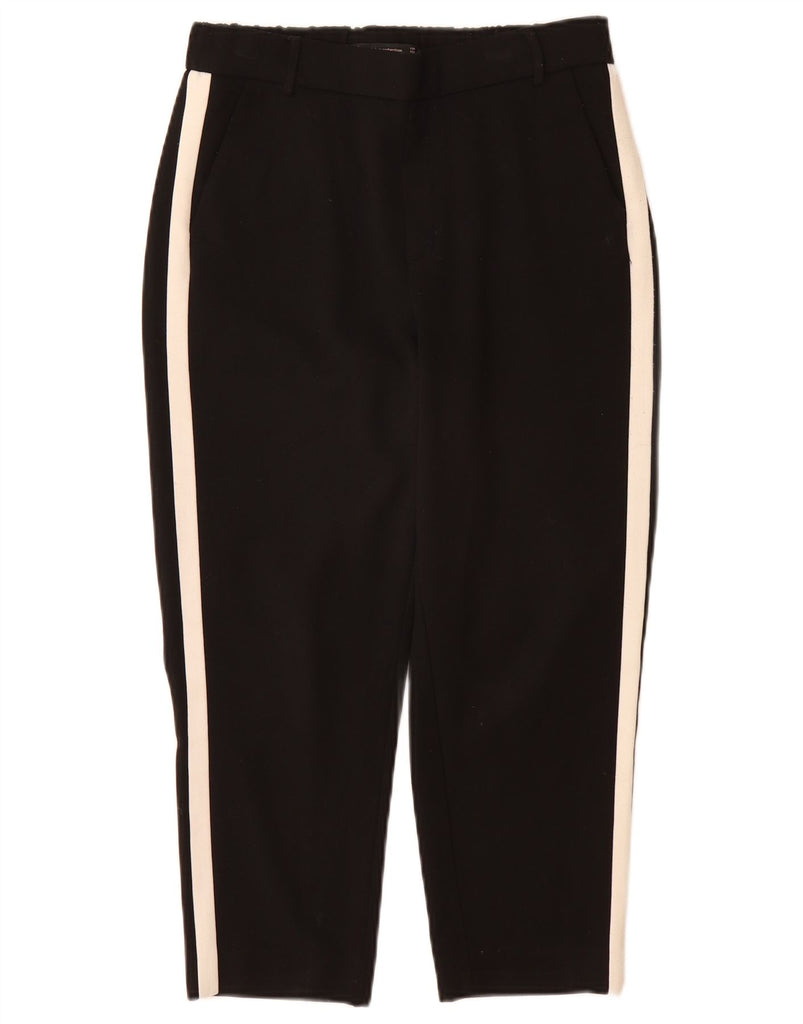 ZARA Womens Straight Capri Trousers XS W25 L22 Black Colourblock Polyester