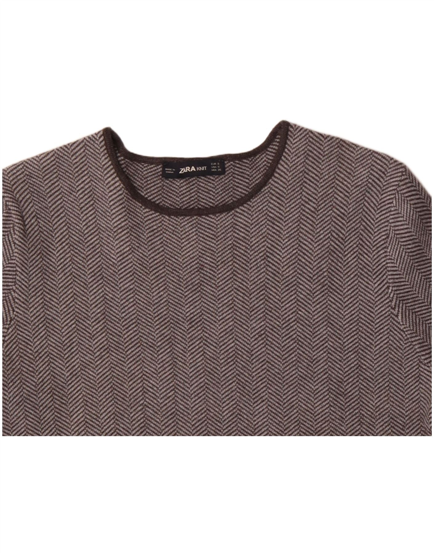 Женская футболка ZARA Top UK 10, маленькая, серая, с рисунком «елочка», вискоза