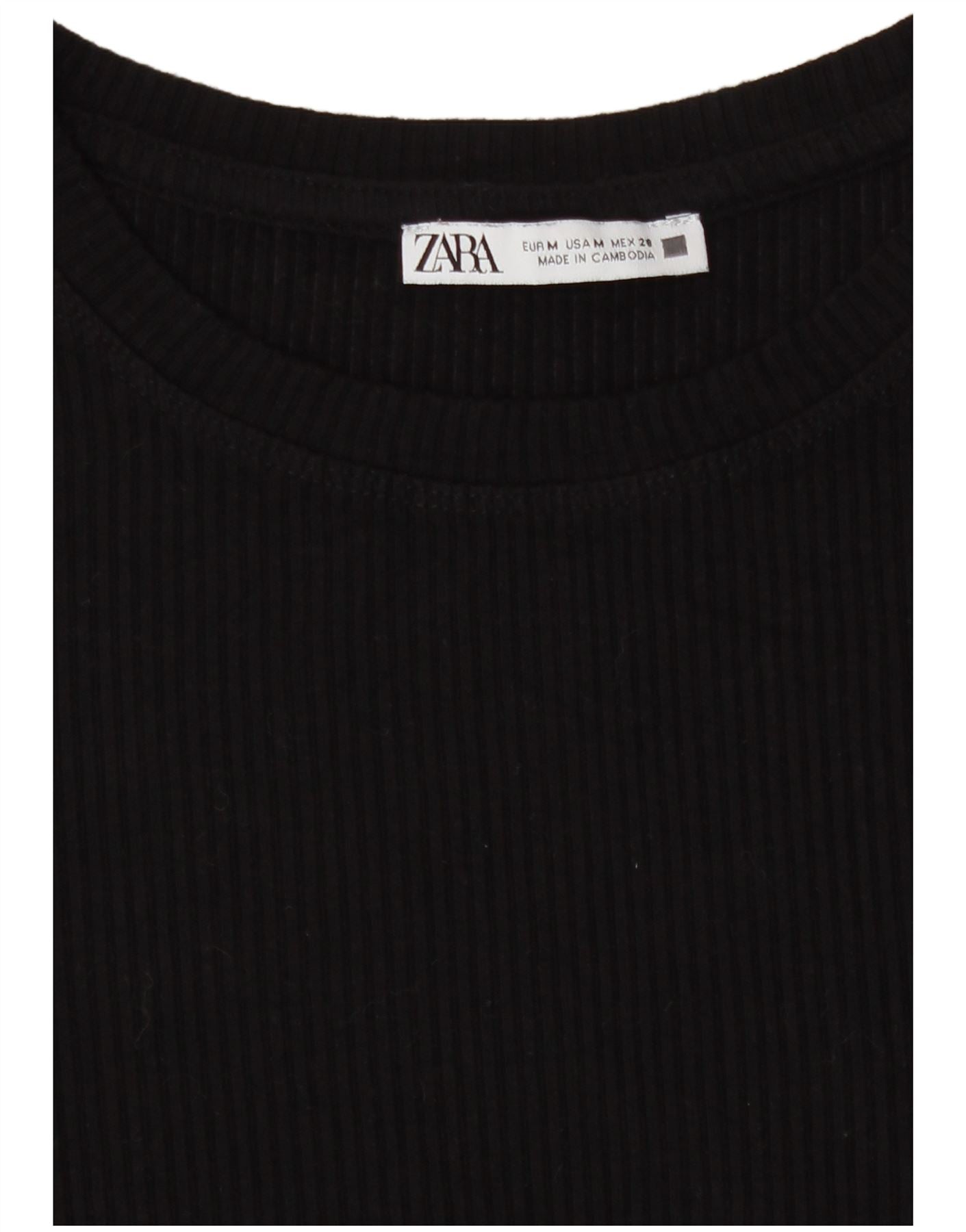 - Описание ИИ: Женский топ-футболка Zara изготовлен из удобного трикотажа в рубчик черного цвета. Он обеспечивает мягкость и дополнительную эластичность для комфорта. Классический круглый вырез и короткие рукава создают неподвластный времени силуэт. Он имеет стандартную посадку, что обеспечивает удобство ношения. Ребристая текстура придает этой современной базовой модели тонкий визуальный интерес, делая ее универсальным элементом гардероба.