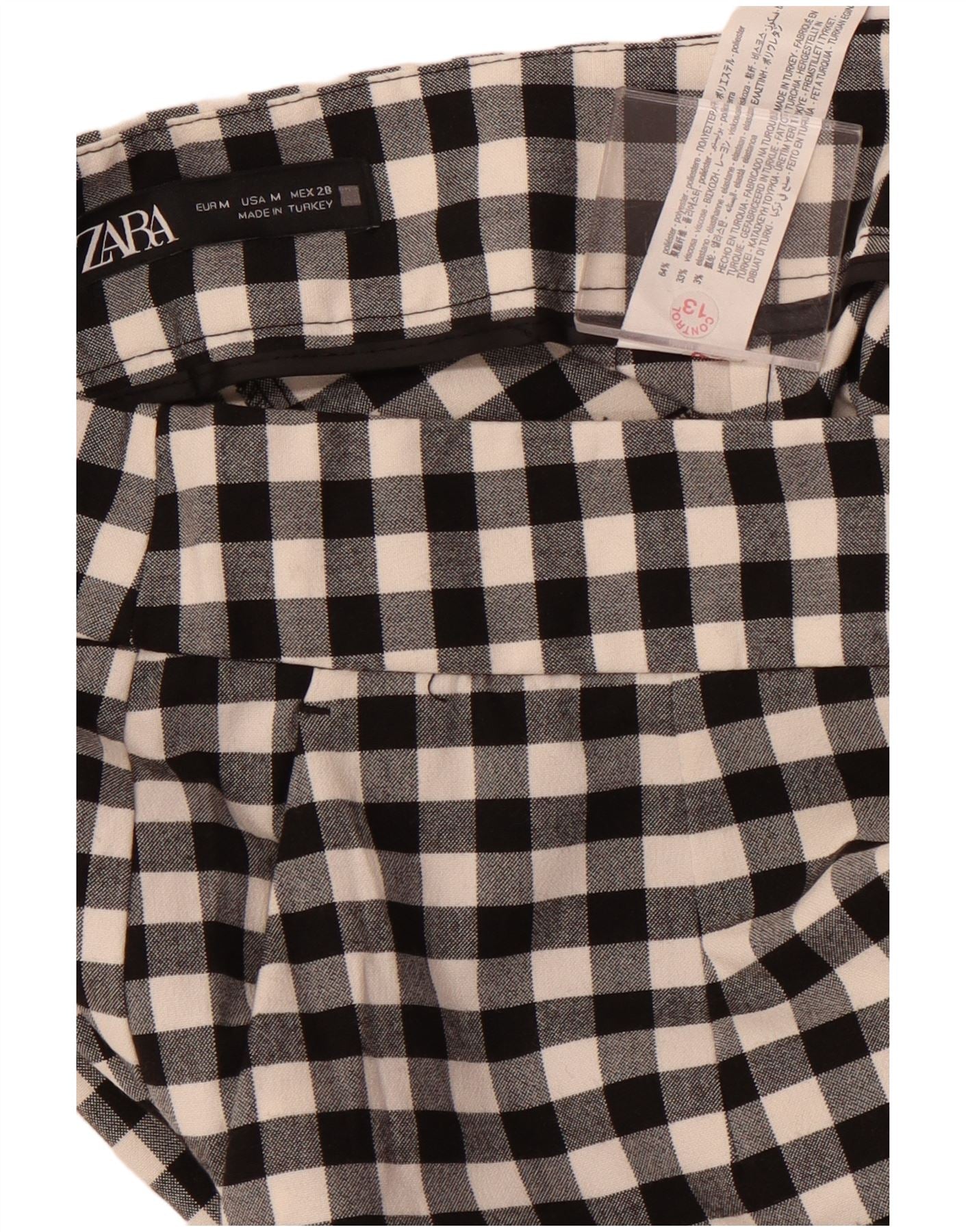 Женские зауженные брюки чинос ZARA, средний размер W28 L26, черный полиэстер в мелкую клетку
