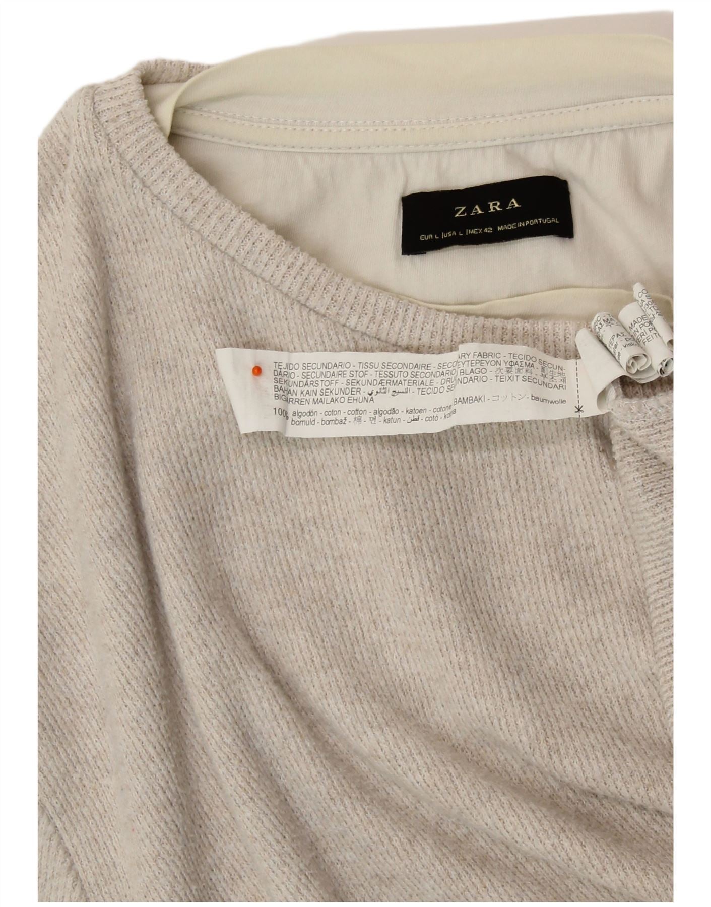 Женский топ ZARA с длинным рукавом UK 16, большой размер, бежевый хлопок