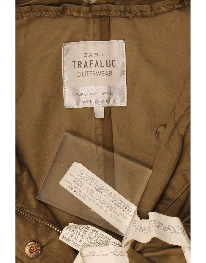 ZARA Womens Trafaluc Hooded Parka Jacket UK 16 Large Khaki Cotton