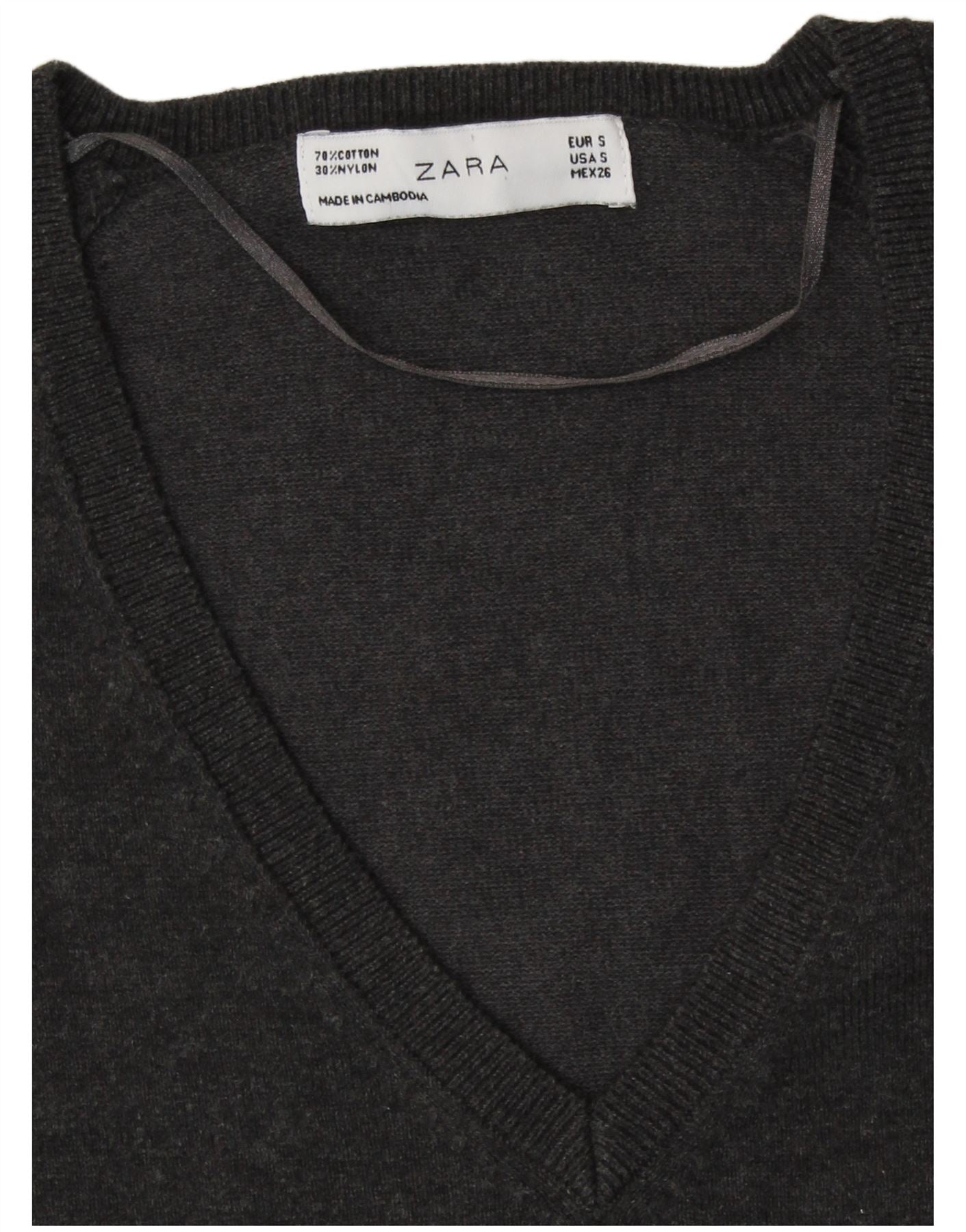 Женский джемпер с v-образным вырезом ZARA UK 10, маленький серый цвет