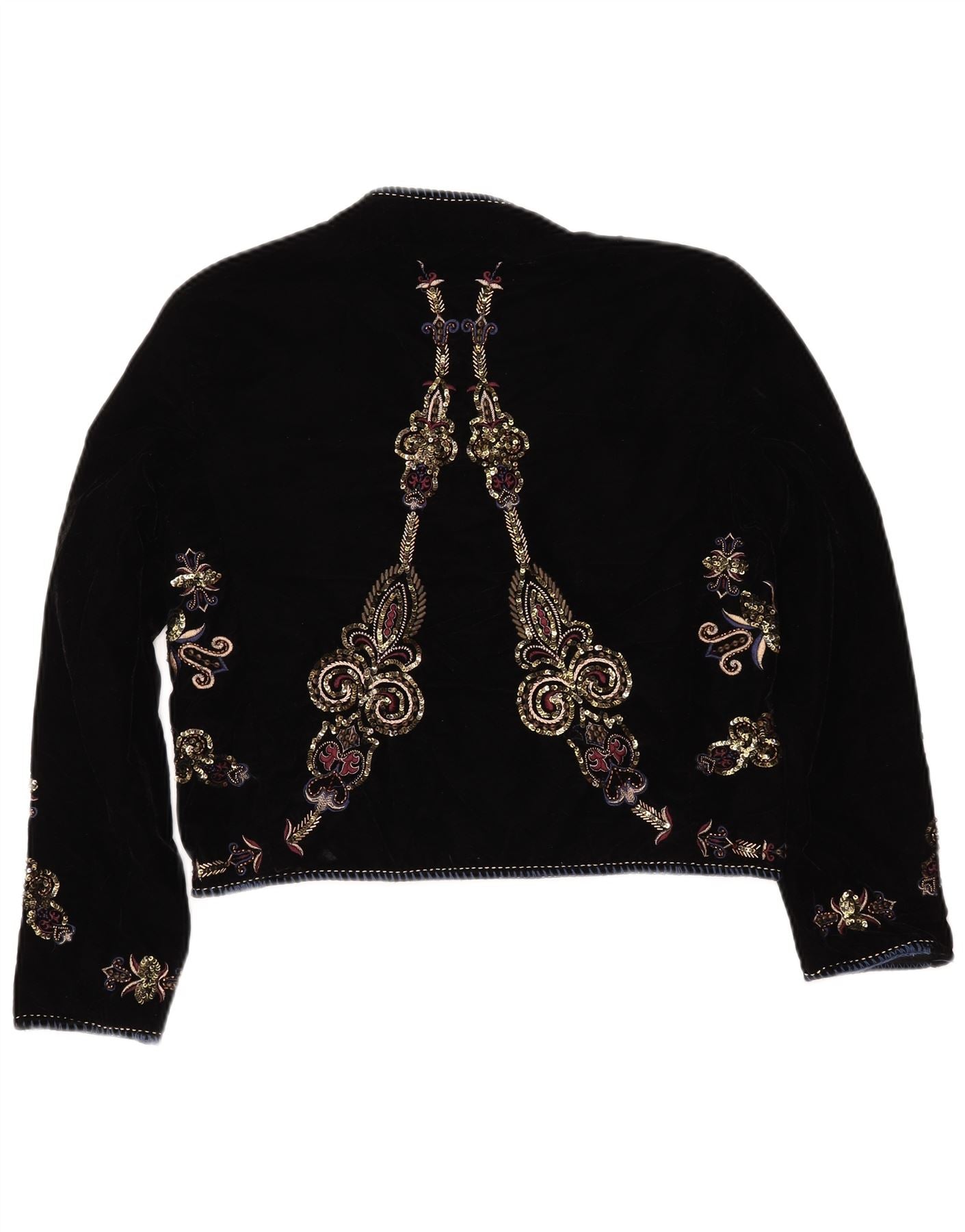 Женское бархатное открытое болеро ZARA UK 16, большой черный с узором пейсли
