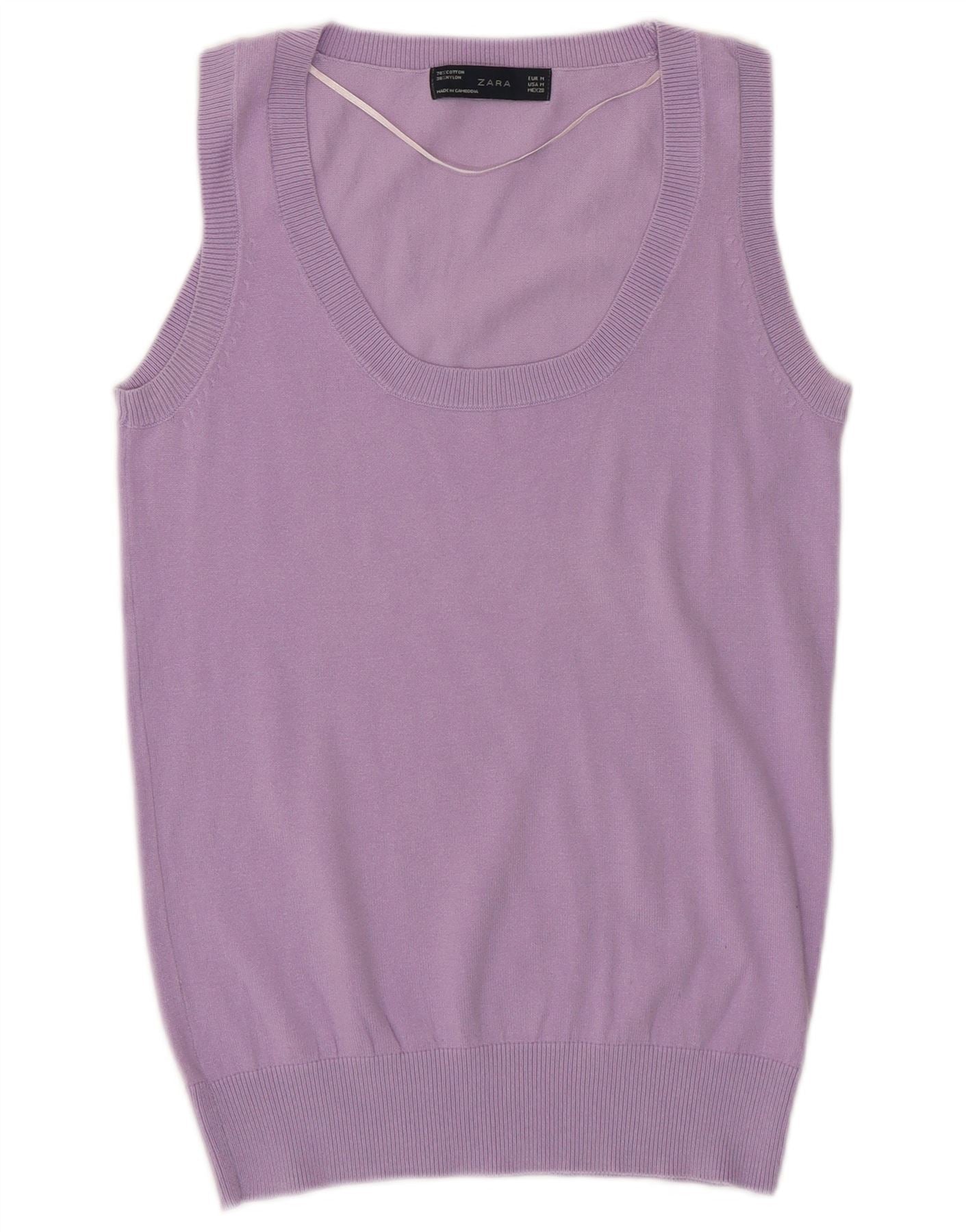 Женская майка без рукавов ZARA UK 14, хлопковый средний фиолетовый цвет