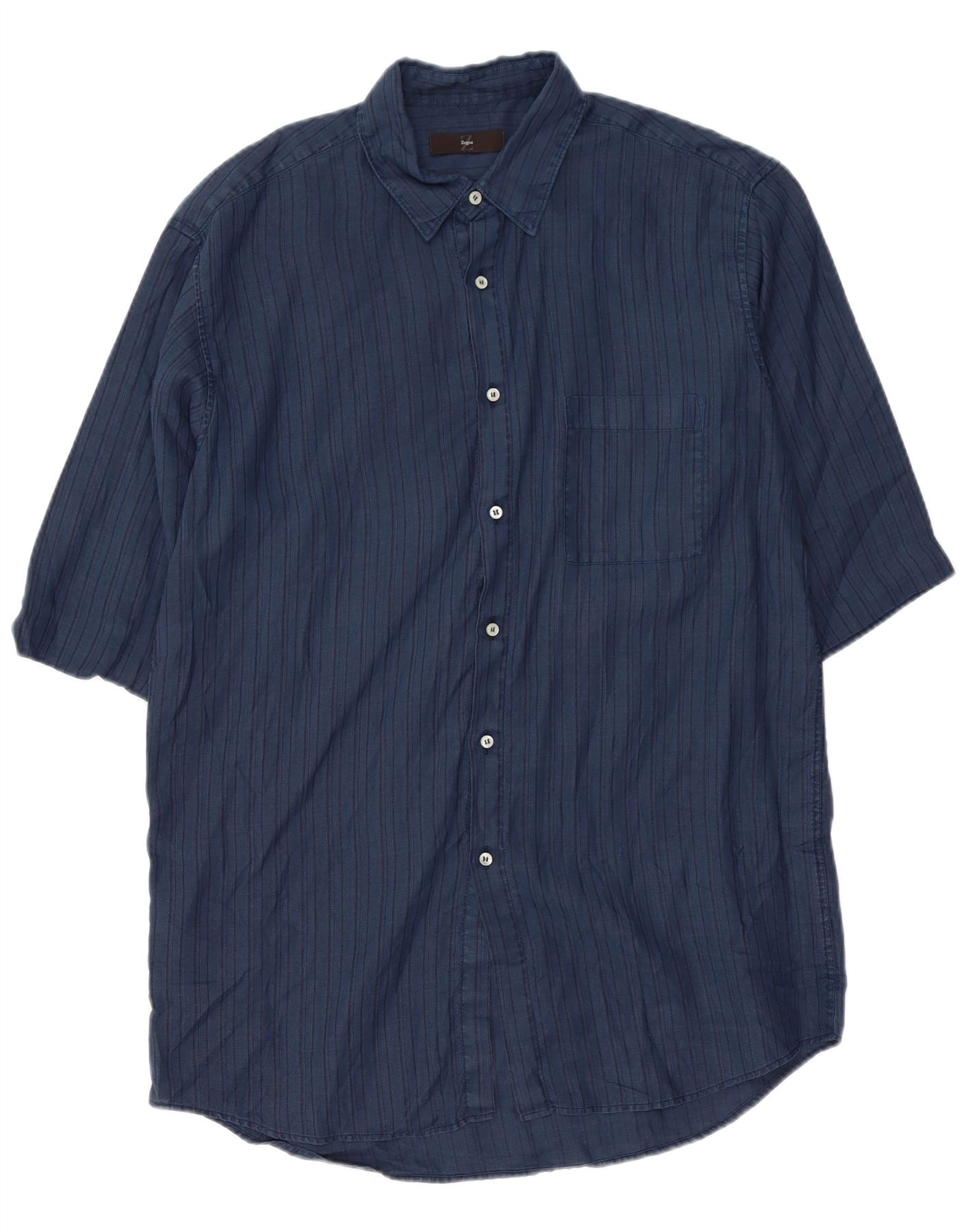 Мужская рубашка с коротким рукавом ZEGNA, размер 41, средняя, темно-синяя в полоску